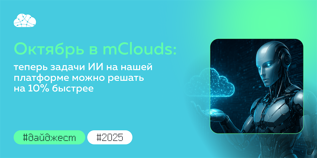 Привет! Прошел месяц, и мы, как обычно, спешим поделиться с вами нашими новостями и событиями мира облачных технологий. В октябре главной темой стал ИИ — в общих трендах, публикациях и обновлениях GPU-платформы mClouds.