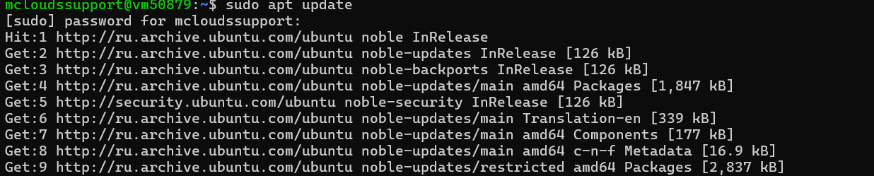 Обновите список доступных пакетов с помощью команды sudo apt update