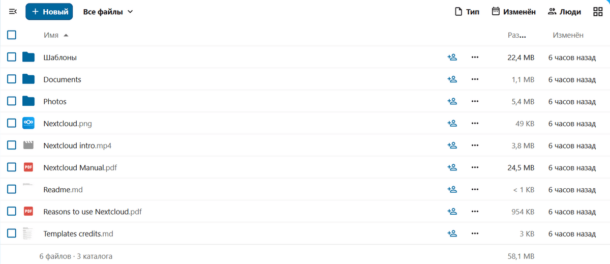 Теперь перед вами главное меню Nextcloud