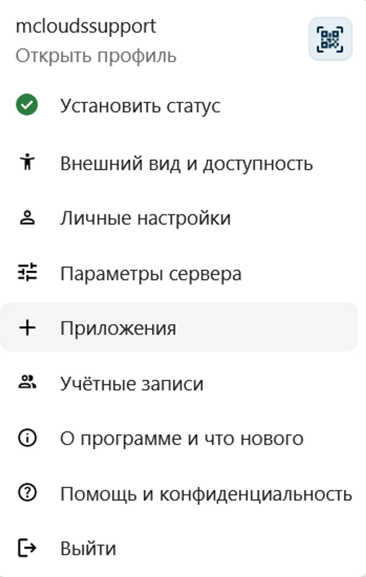 Перейдите в меню пользователя -> Приложения