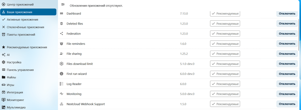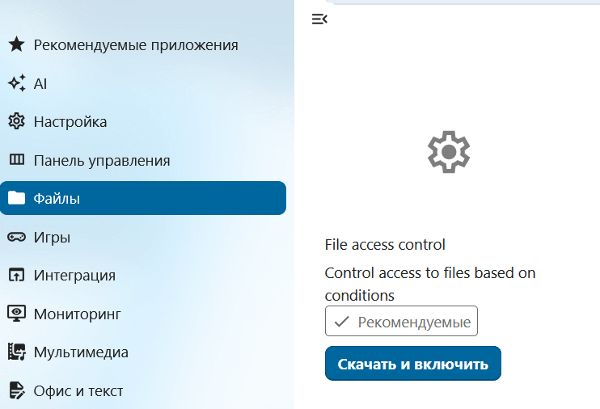 Nextcloud имеет встроенный каталог модулей, который постоянно обновляется и позволяет гибко настраивать систему хранения файлов.