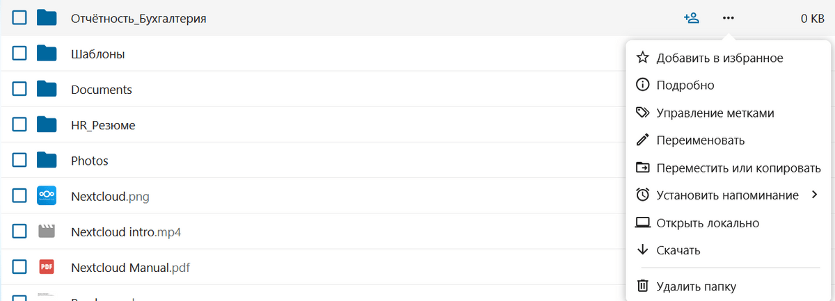 - Предоставить доступ к определенным файлам сотрудникам, не имеющим доступ к Nextcloud