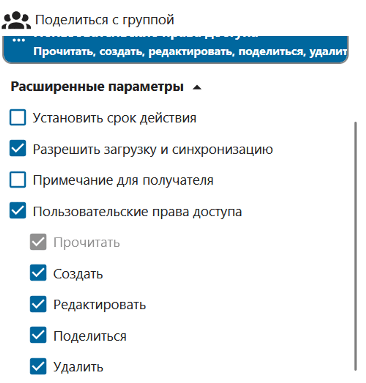 Ниже появится меню предоставления доступа, нажмите "Пользовательские права доступа", чтобы самостоятельно настроить права пользователей