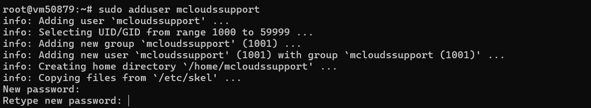 Введите команду sudo adduser <имя_пользователя> и заполните необходимые поля.