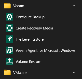 - Откройте меню «ПУСК», перейдите в папку Veeam и запустите «Configure Backup»