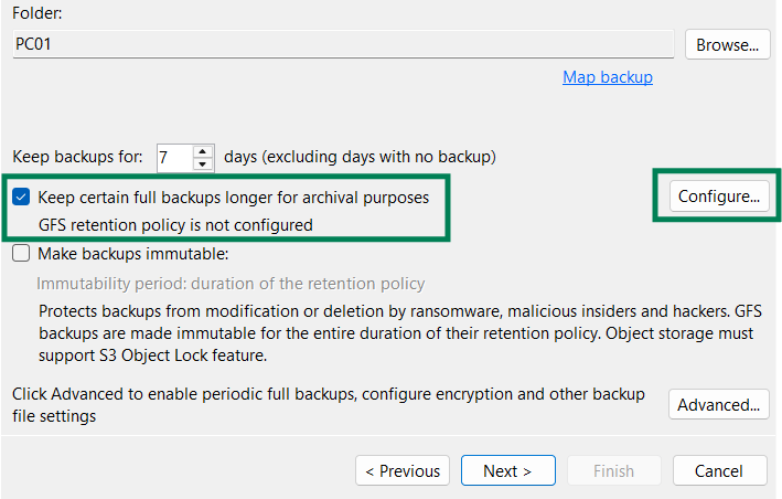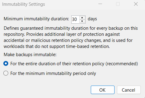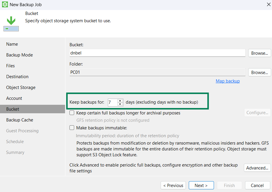 4. Если Ваше хранилище поддержкивает функцию Object Lock, вы можете сделать резервную копию неизменяемой. Обратите внимание, что GFS копии будут неизменяемы на протяжении всего срока хранения