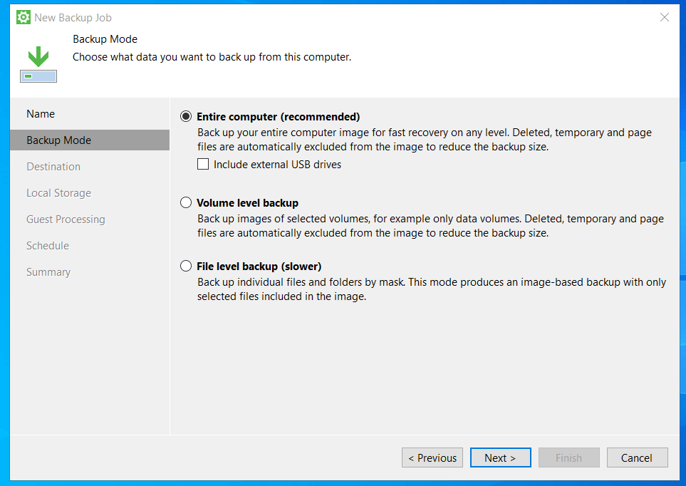 Для того, чтобы создать резервную копию ОС Windows при помощи агента Veeam, выполните следующие шаги: