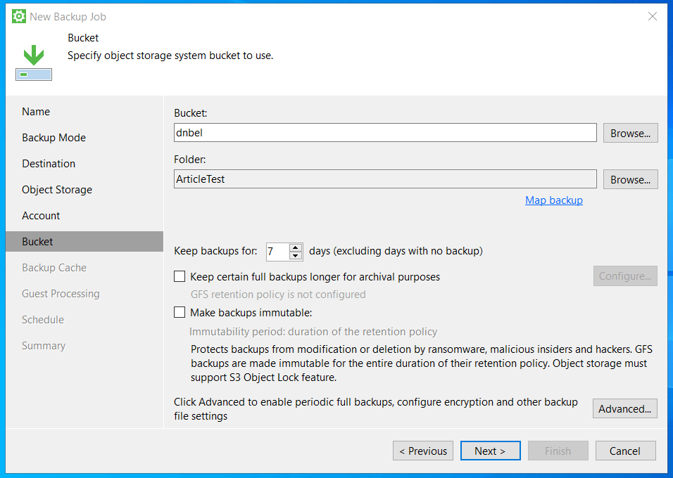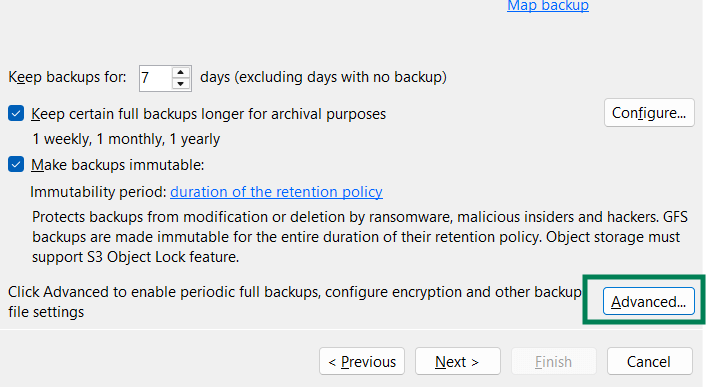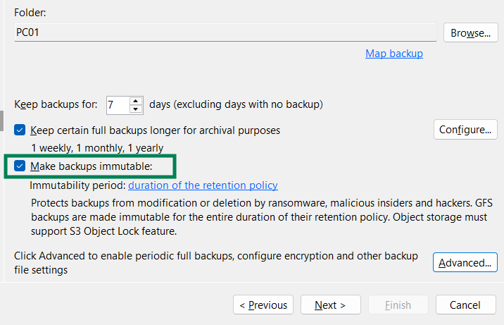 4. Если Ваше хранилище поддержкивает функцию Object Lock, вы можете сделать резервную копию неизменяемой. Обратите внимание, что GFS копии будут неизменяемы на протяжении всего срока хранения
