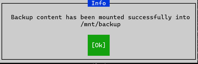 - После подключения к хранилищу, содержимое бэкапа будет смонтировано по указанному в Info пути