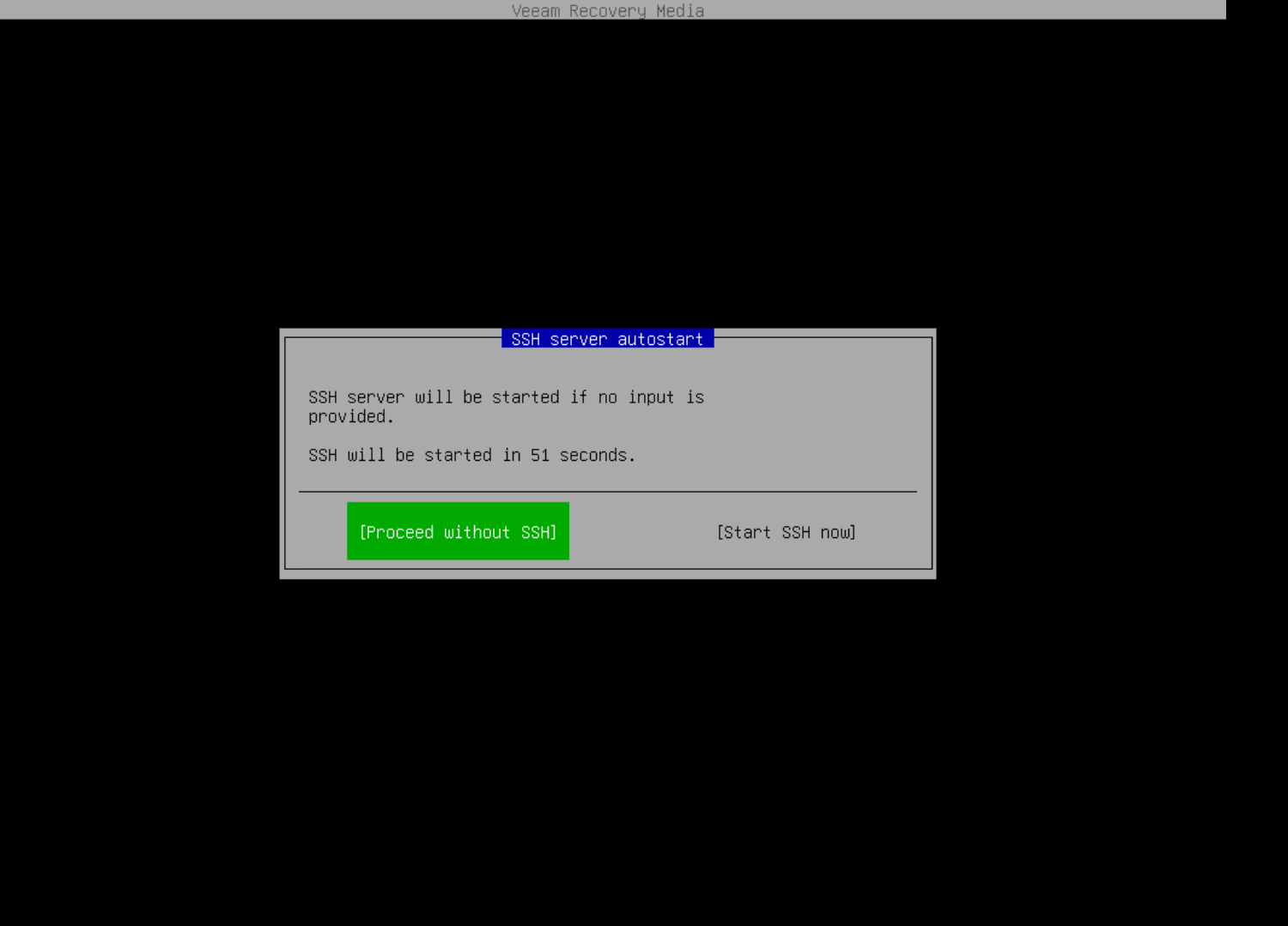 - Подключите Recovery Media к виртуальной машине и загрузитесь с неё. При необходимости, запустите ssh