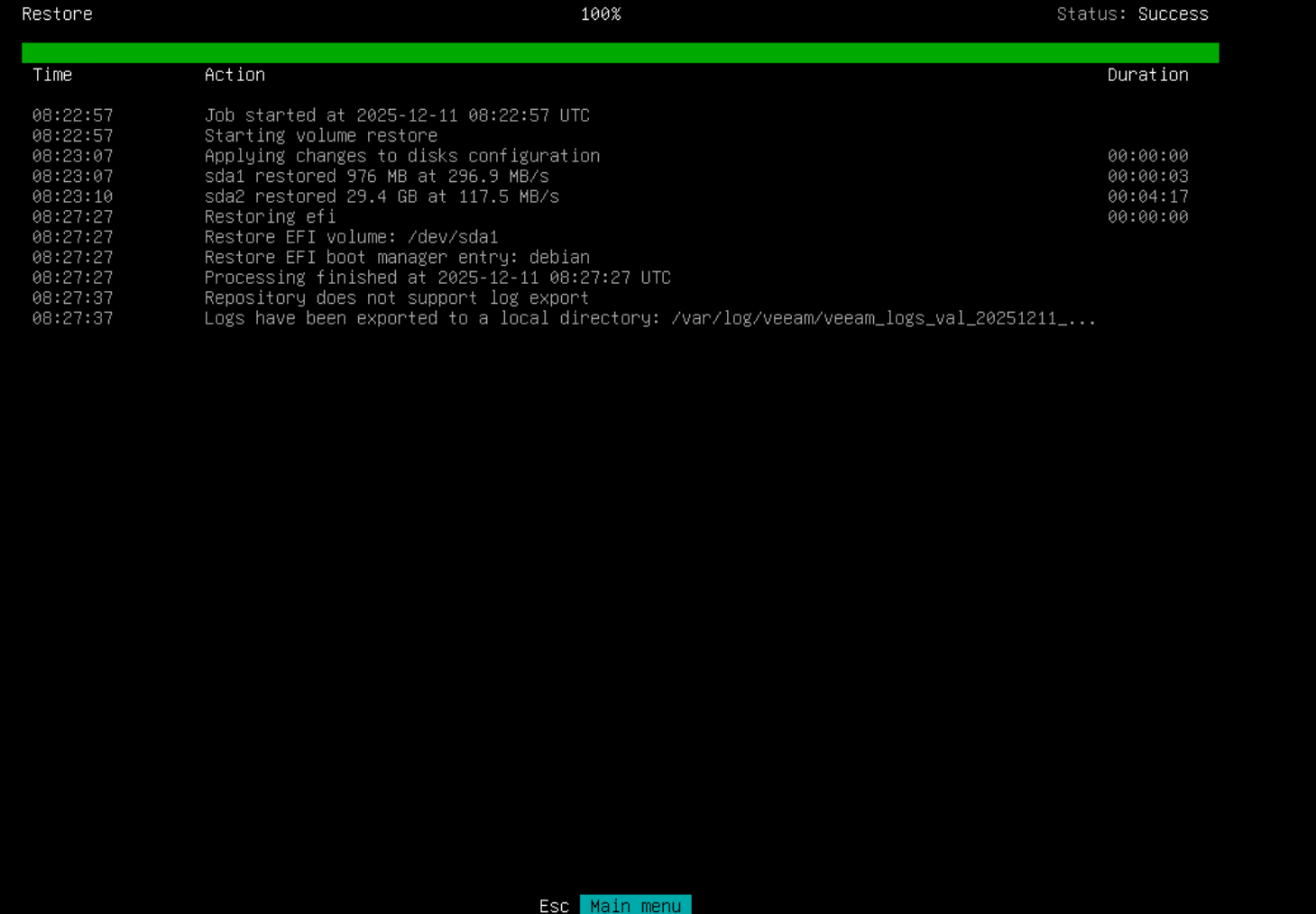 - Дождитесь окончания восстановления и перезагрузите систему