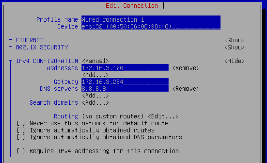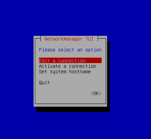- Для настройки параметров сетевого адаптера, перйдите в "Configure Network", запустится утилита nmtui