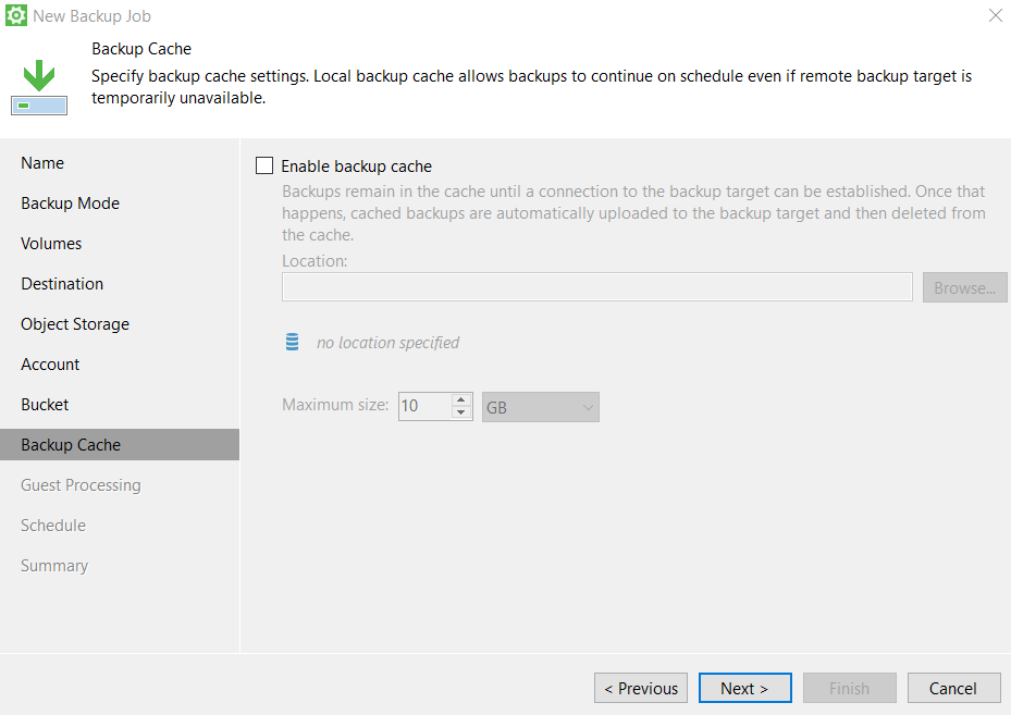 - Если необходимо, настройте кэш резервного копирования