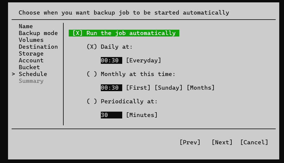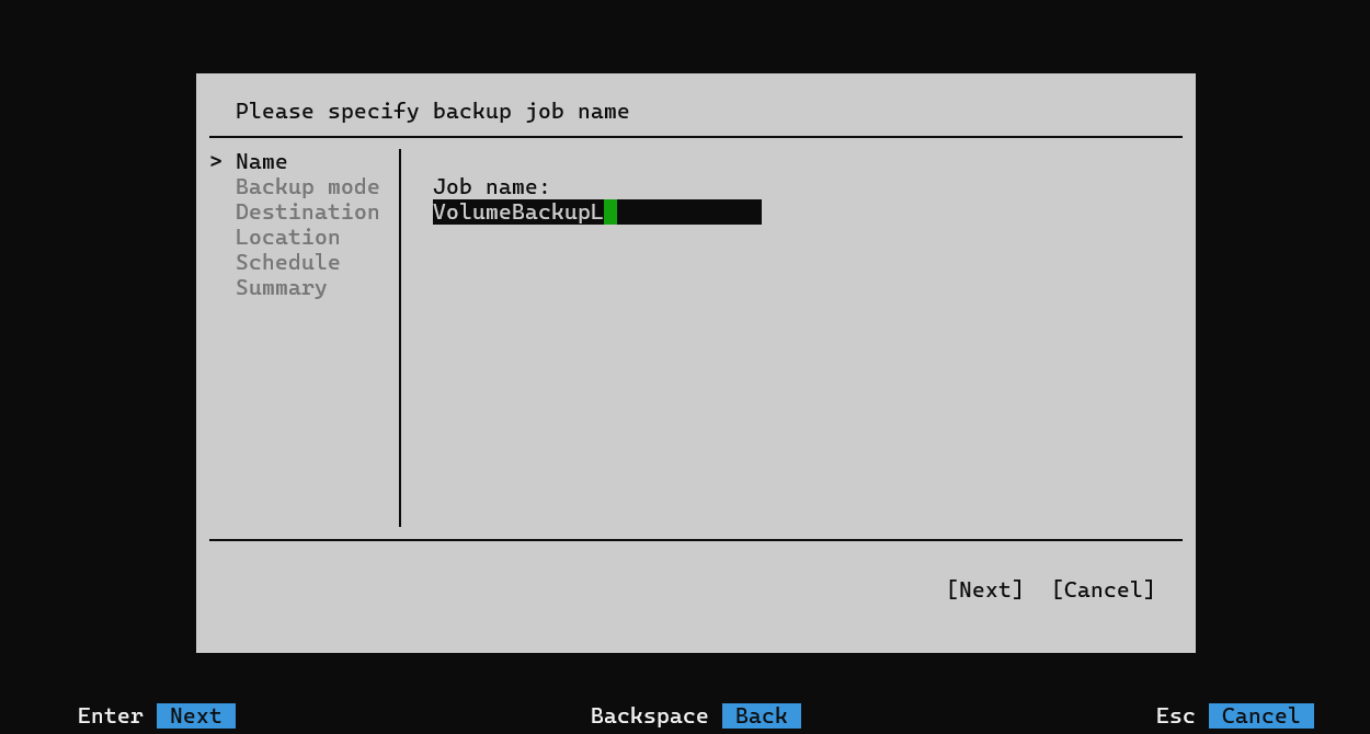 Для того, чтобы создать задачу резервного копирования отдельного диска или файлов в Linux при помощи псведо-интерфейса сделайте следующие шаги: