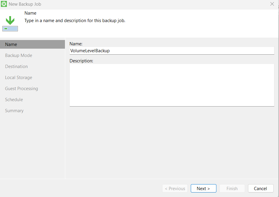 - Запустите создание новой задачи Резервного Копирования Veeam Agent