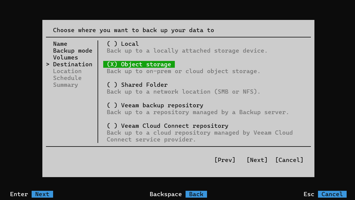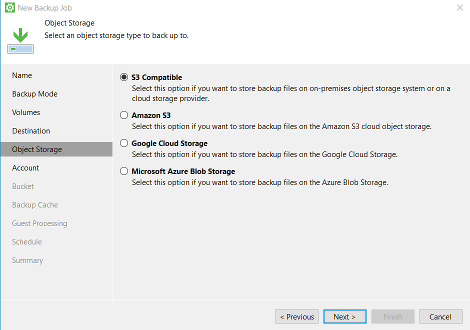 - Выберите хранилище резервной копии. В данной статье будет рассмотрен только вариант "Object Storage"