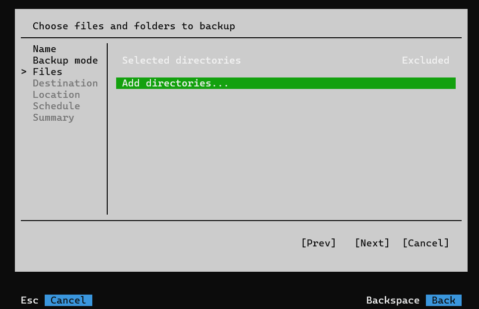 Для того, чтобы создать задачу резервного копирования отдельного диска или файлов в Linux при помощи псведо-интерфейса сделайте следующие шаги: