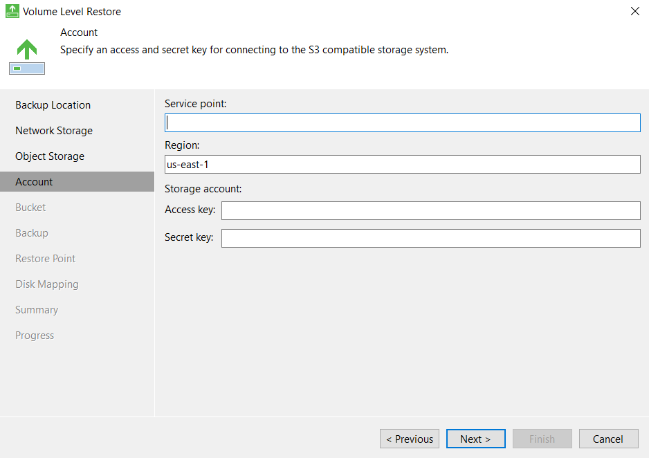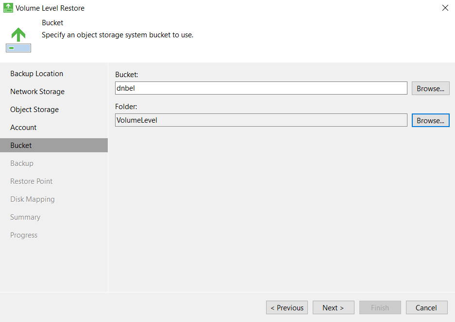 - Укажите Bucket и папку хранения резервной копии