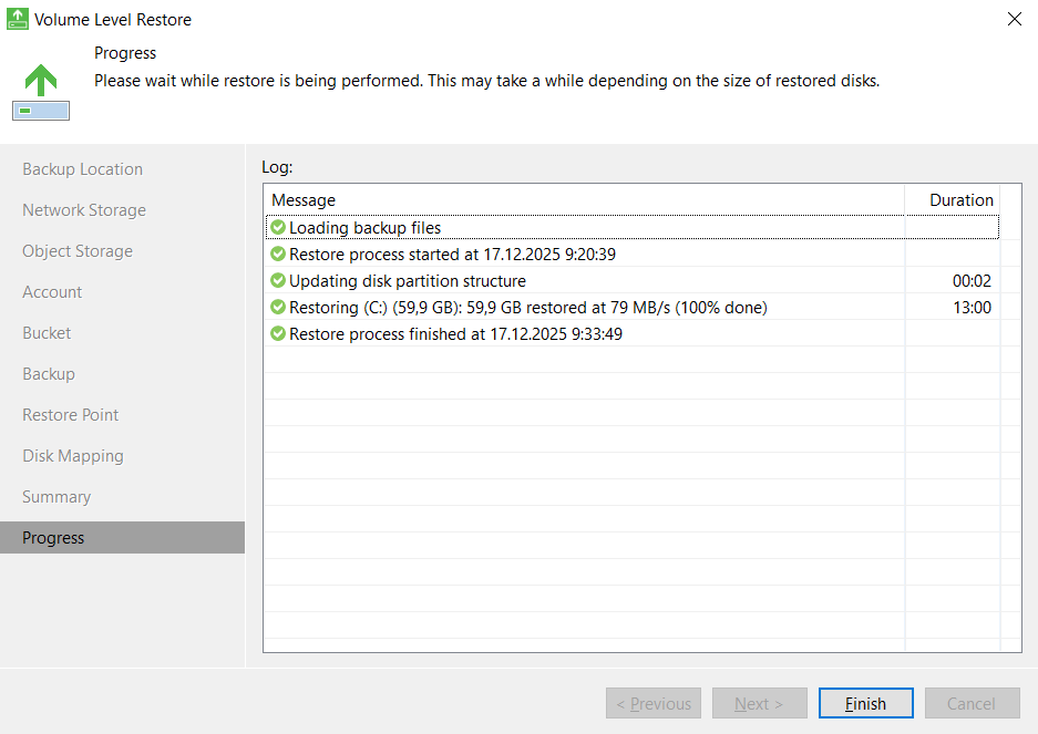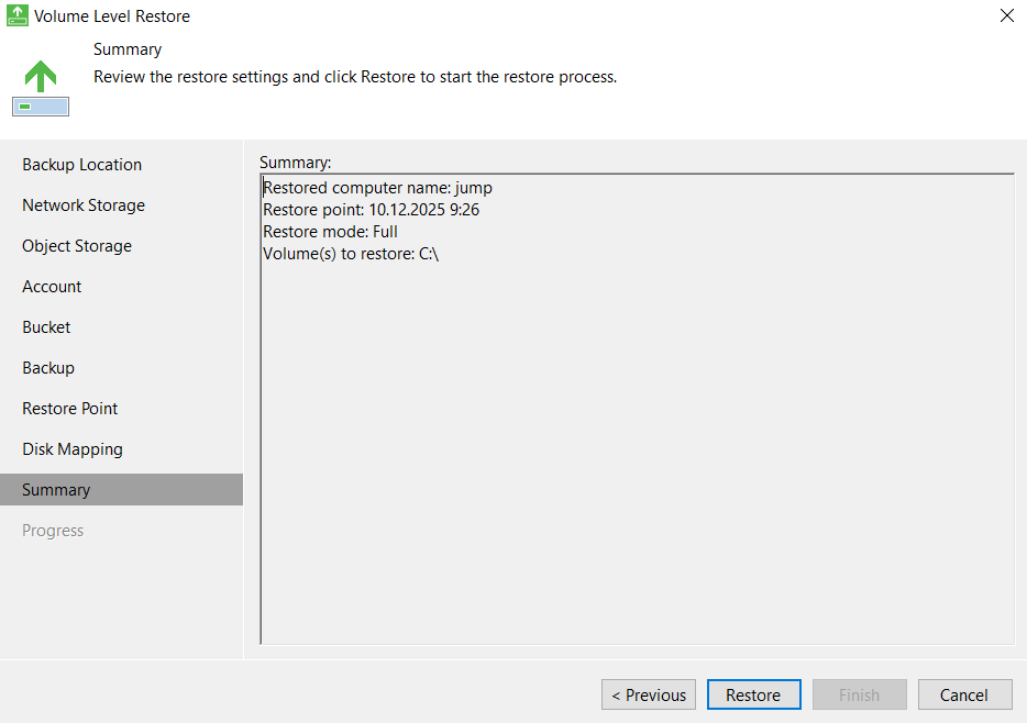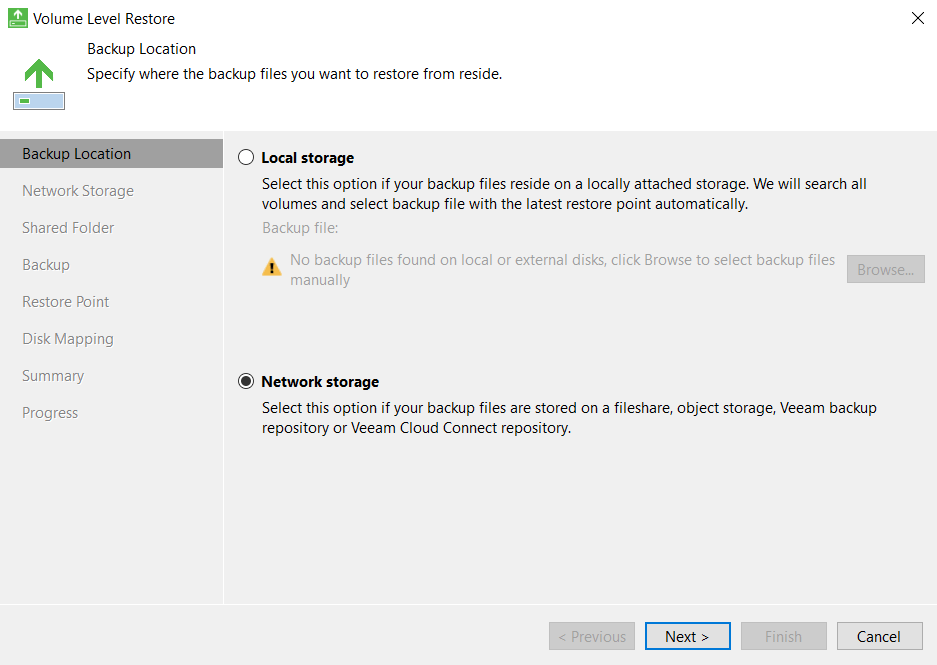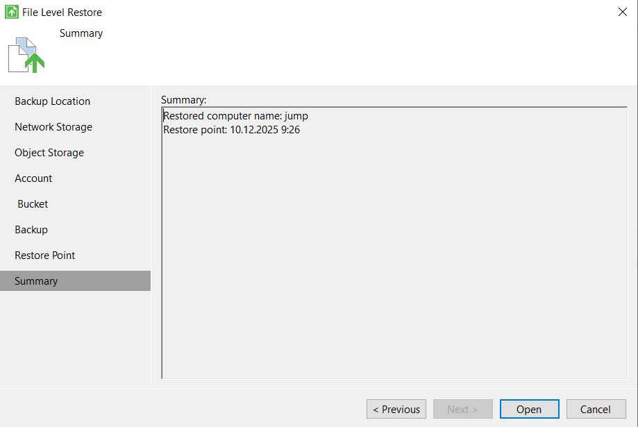 - Запустите File Level Restore
