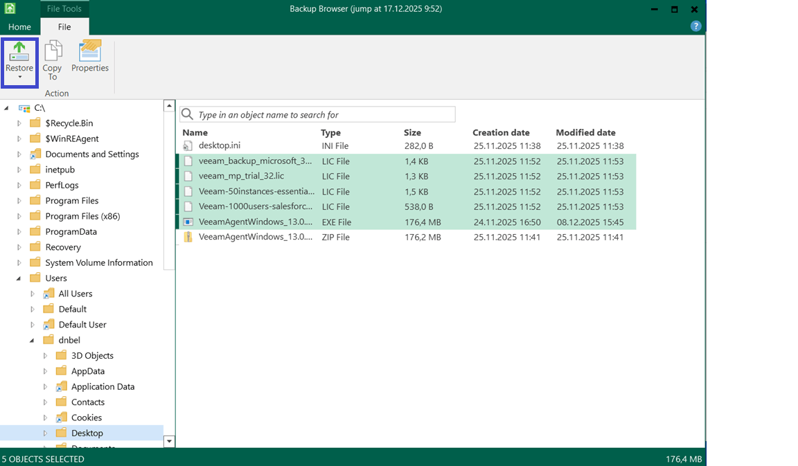 Для того, чтобы восстановить отдельный файл или папку на виртуальной машине с ОС Windows и установленным агентом Veeam, выполните следующие шаги: