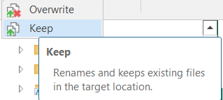 - Нажмите "Keep" для того, чтобы переименовать файлы из резервной копии и сохранить их вместе с существующими