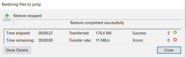 - Нажмите "Restore", если желаете восстановить файлы в ту же локацию, где они находятся в резервной копии