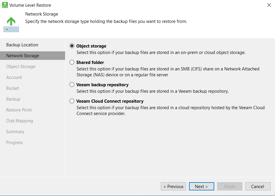 - Выберите хранилище резервной копии (в статье будет рассмотрено только S3-совместимое объектное хранилище)