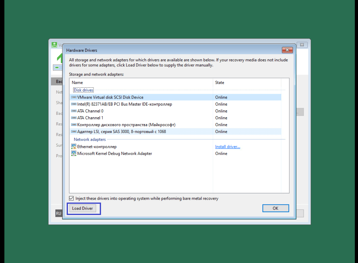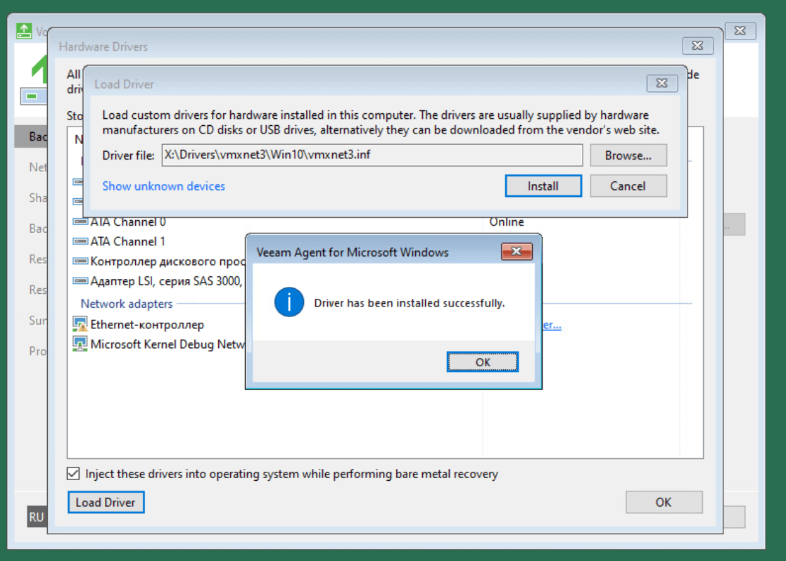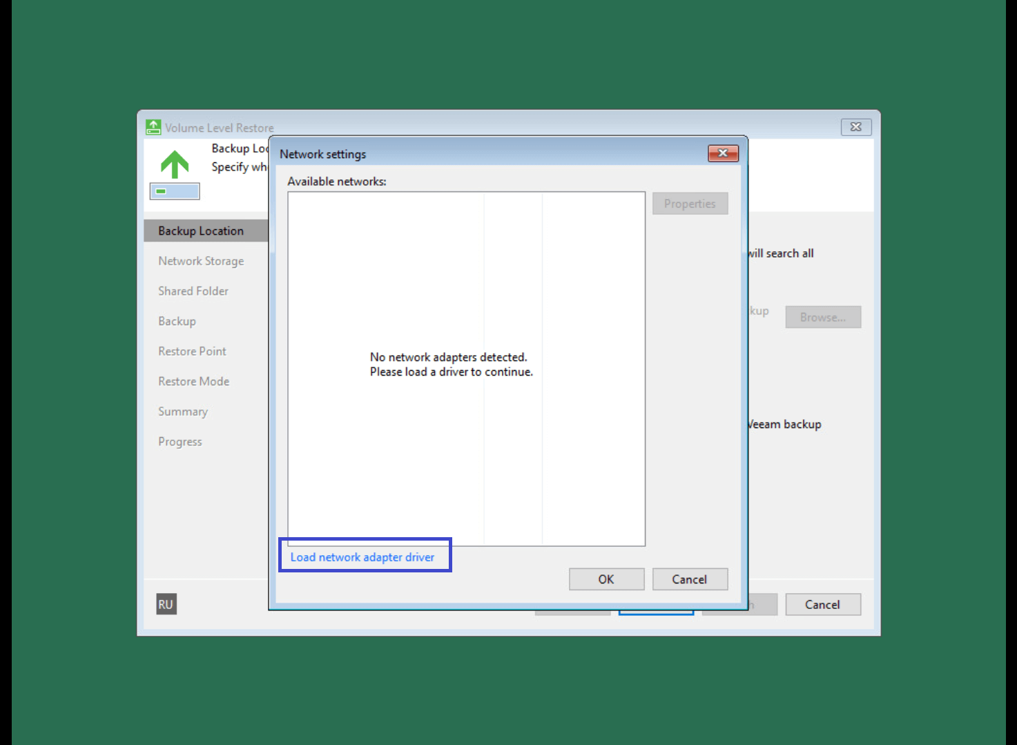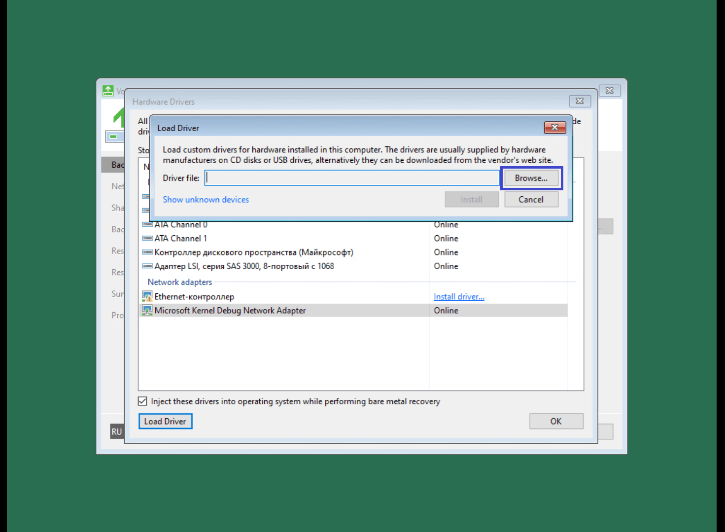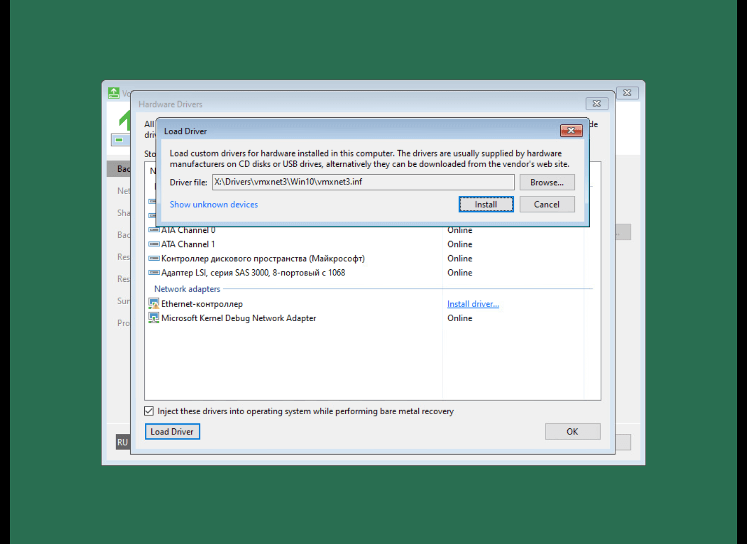 - Выберите папку с добавленным драйвером (для корректной работы рекомендуем, при создании образа восстановления добавлять в него драйвера сетевого адаптера. Подробнее вы можете посмотреть в нашей статье о создании образа восстановления)