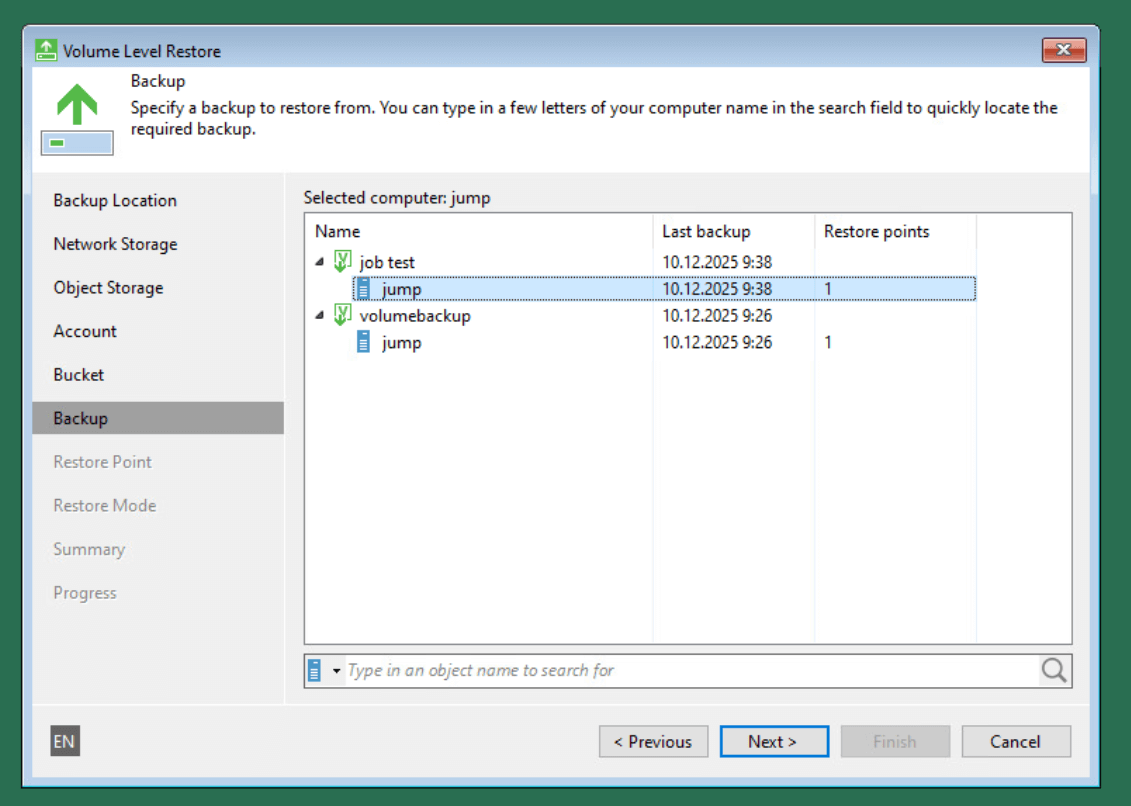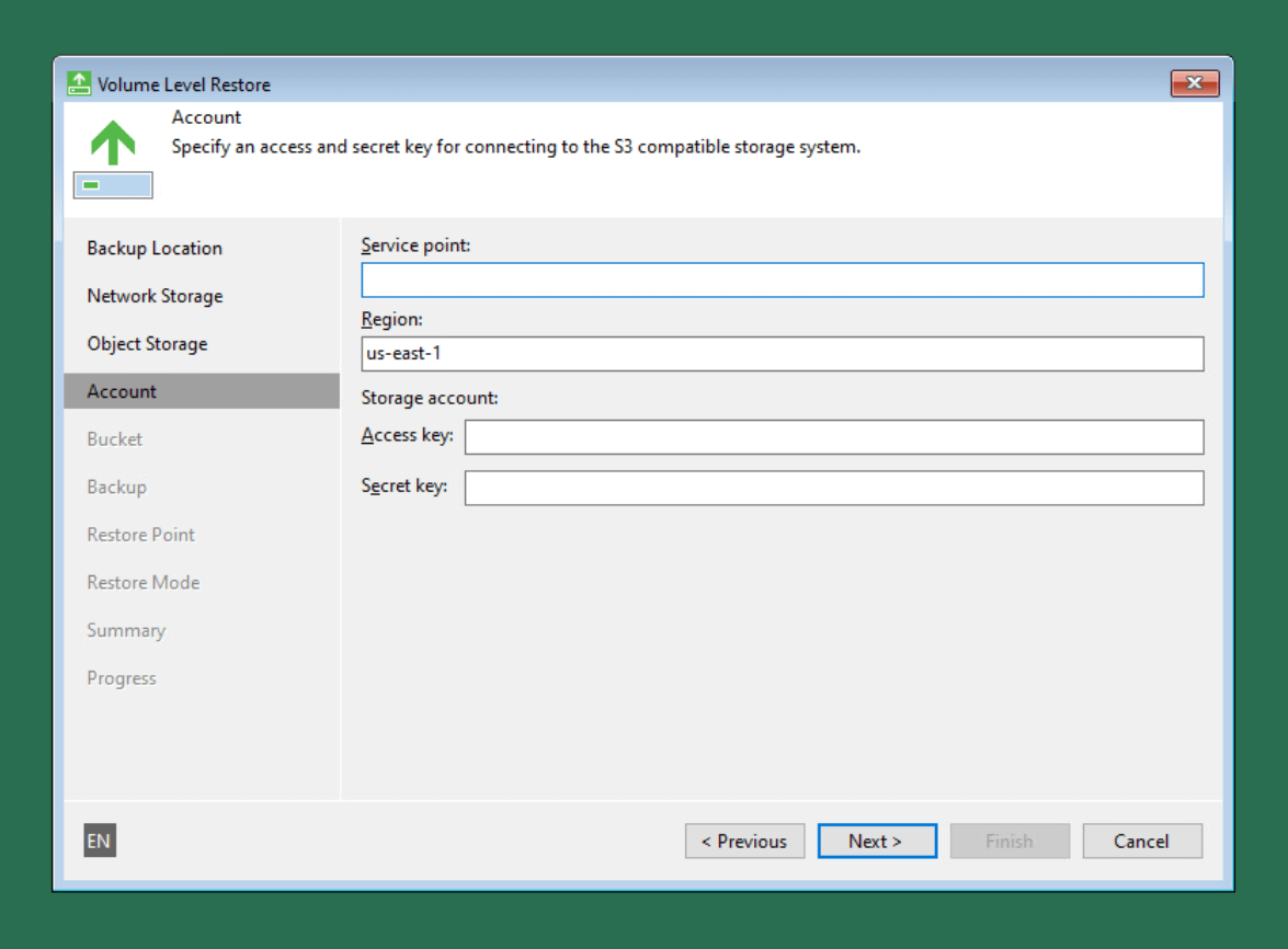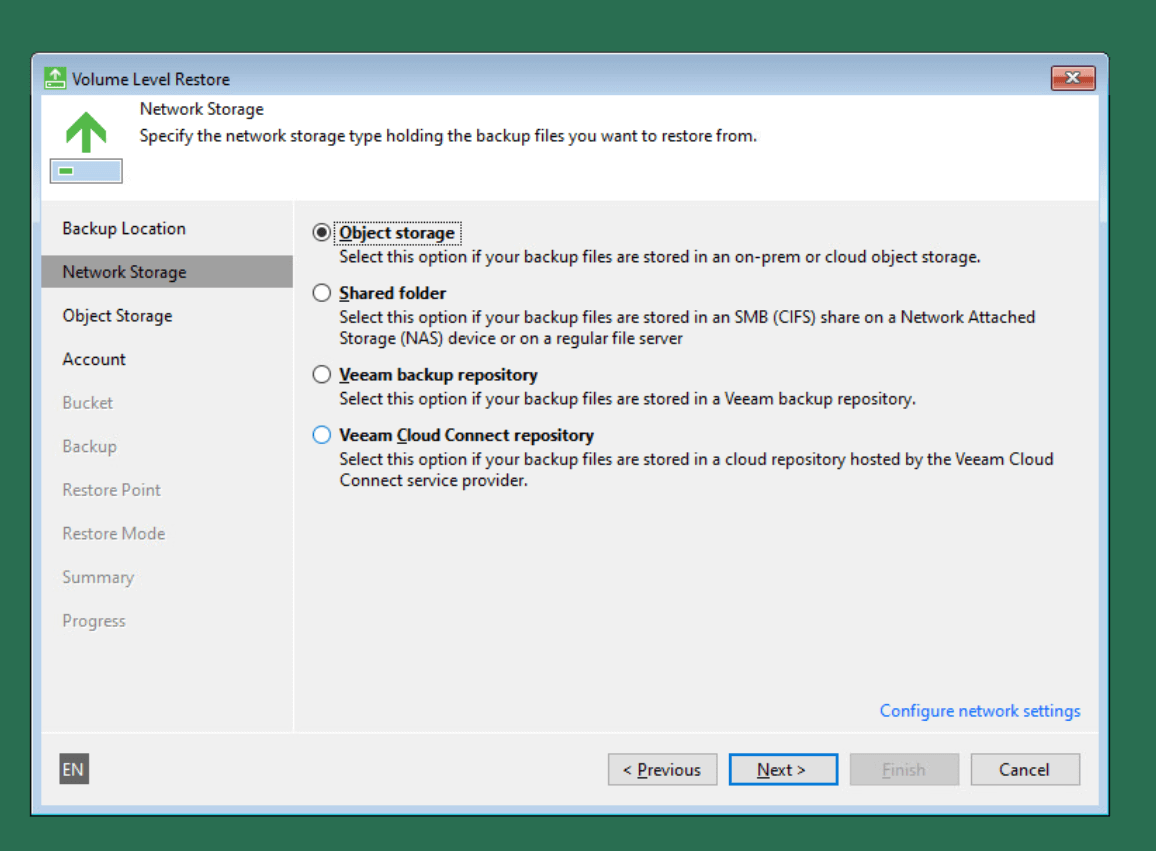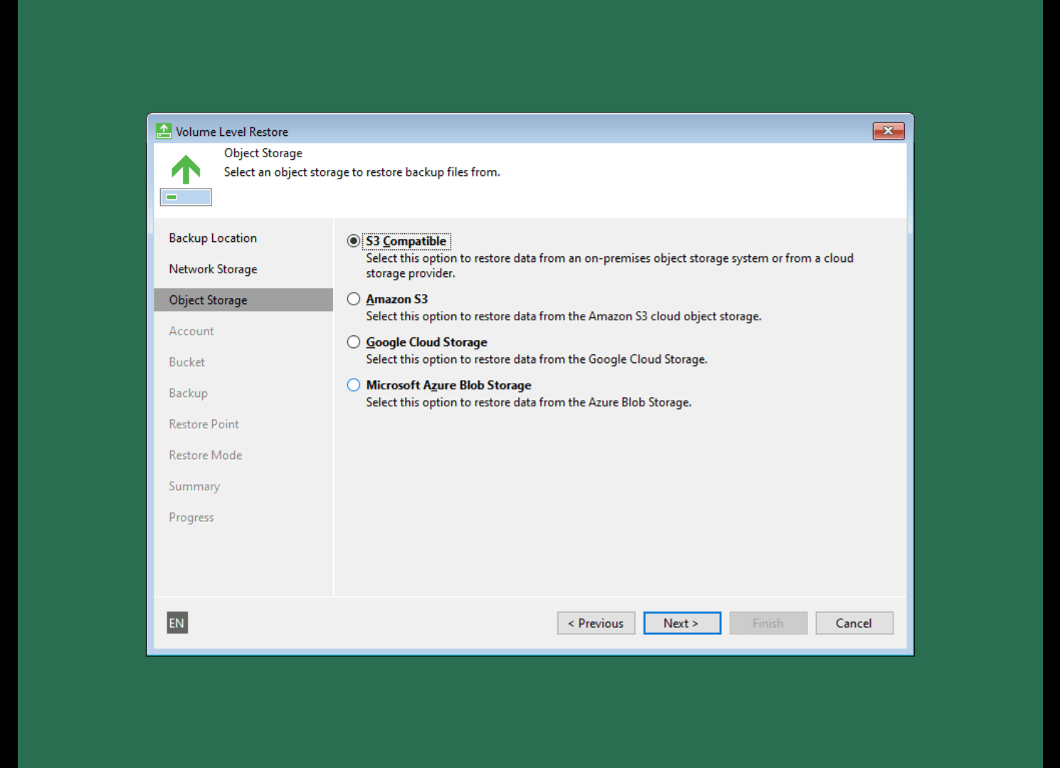 - Укажите хранилище из которого будет производиться восстановление ( в данной статье будет рассмотрено только S3-совместимое объектное хранилище)