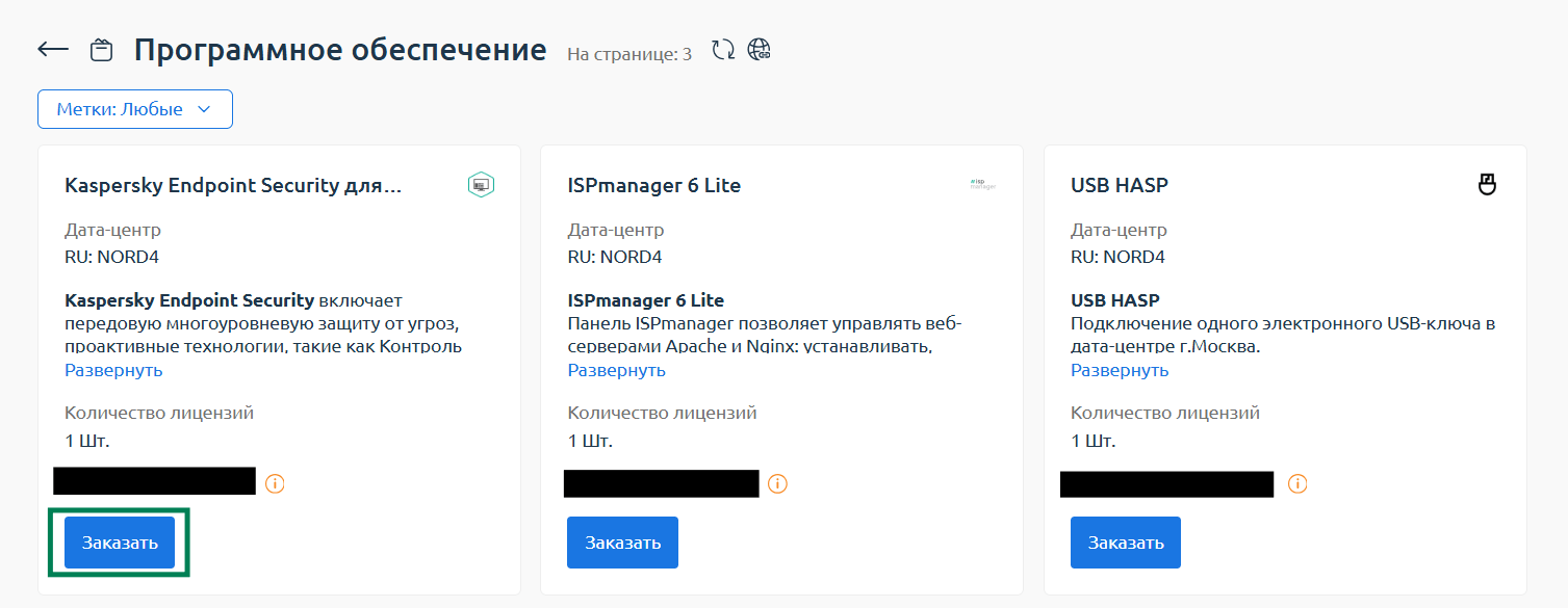 - Перейдите в раздел “Товары/Услуги” -> “Программное обеспечение” и нажмите “Заказать”.