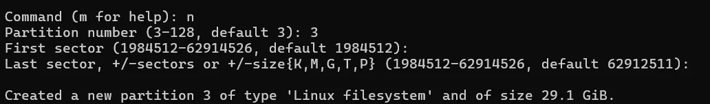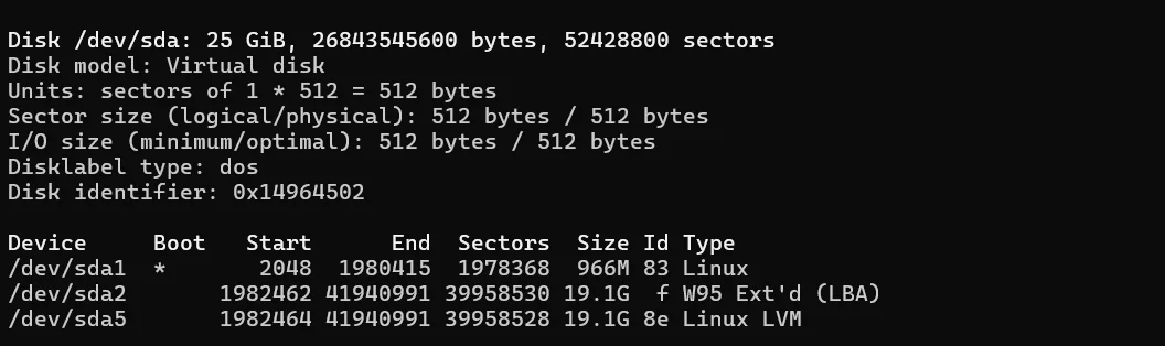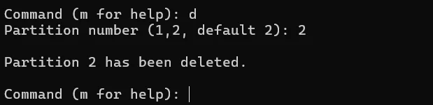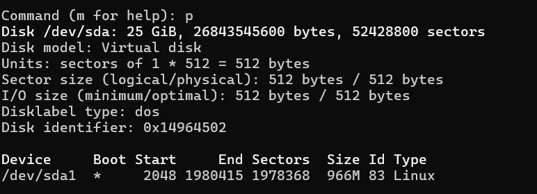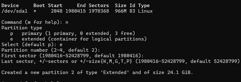 - Запустите утилиту fdisk для для увеличения раздела диска