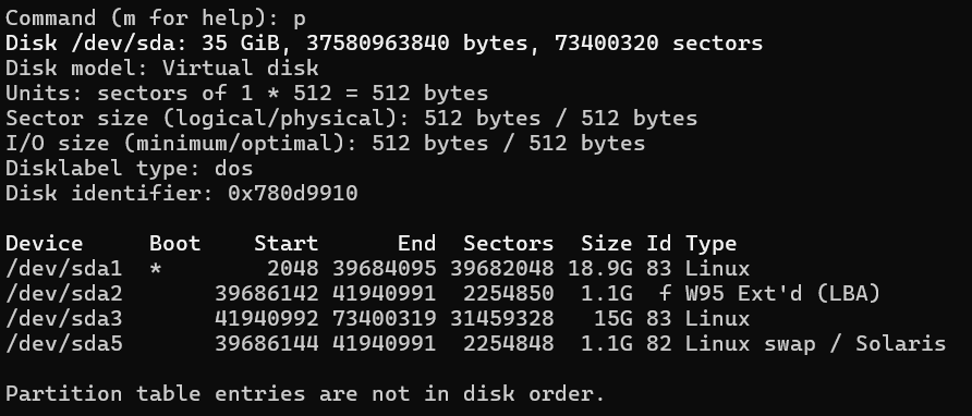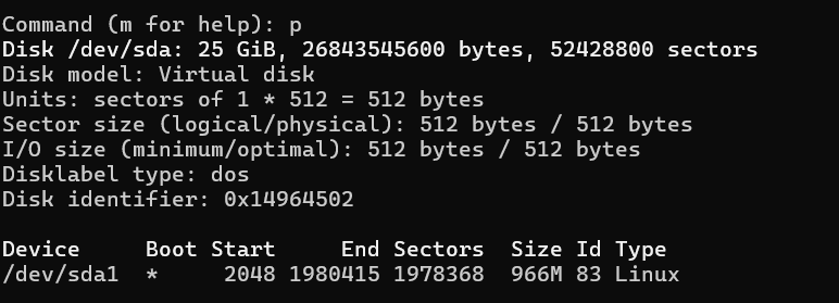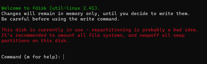 - Запустите утилиту fdisk для для увеличения раздела диска