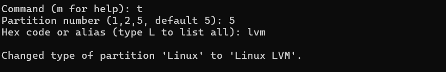 - Создайте заново LVM контейнер и Linux LVM с новым размером (для контейнера используйте тип раздела – extended)