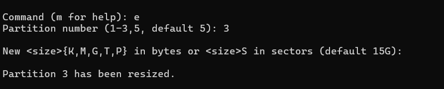 - запустите утилиту fdisk с указанием расширяемого раздела: