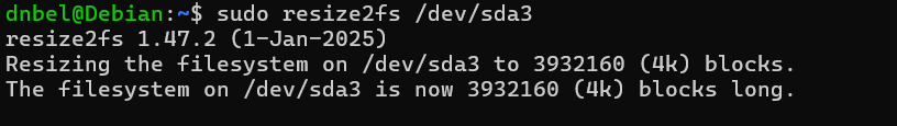 - Расширьте файловую систему. Для ext2/ext3/ext4 используйте