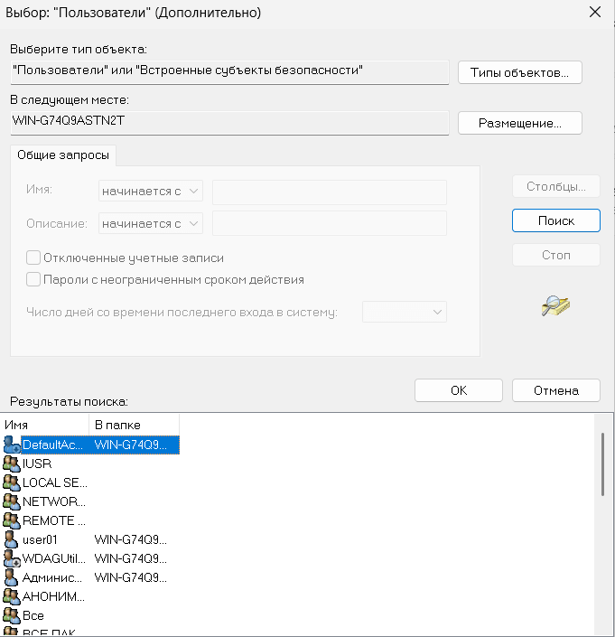 - Далее, нажмите «Дополнительно», и «Поиск». Необходимая группа - "Администраторы"