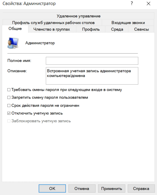 Для обеспечения безопасности системы, мы рекомендуем отключать как неиспользуемые учетные записи, так и встроенные в систему, в том числе и Администратора. Сделать это можно несколькими способами. Рассмотрим некоторые их них.