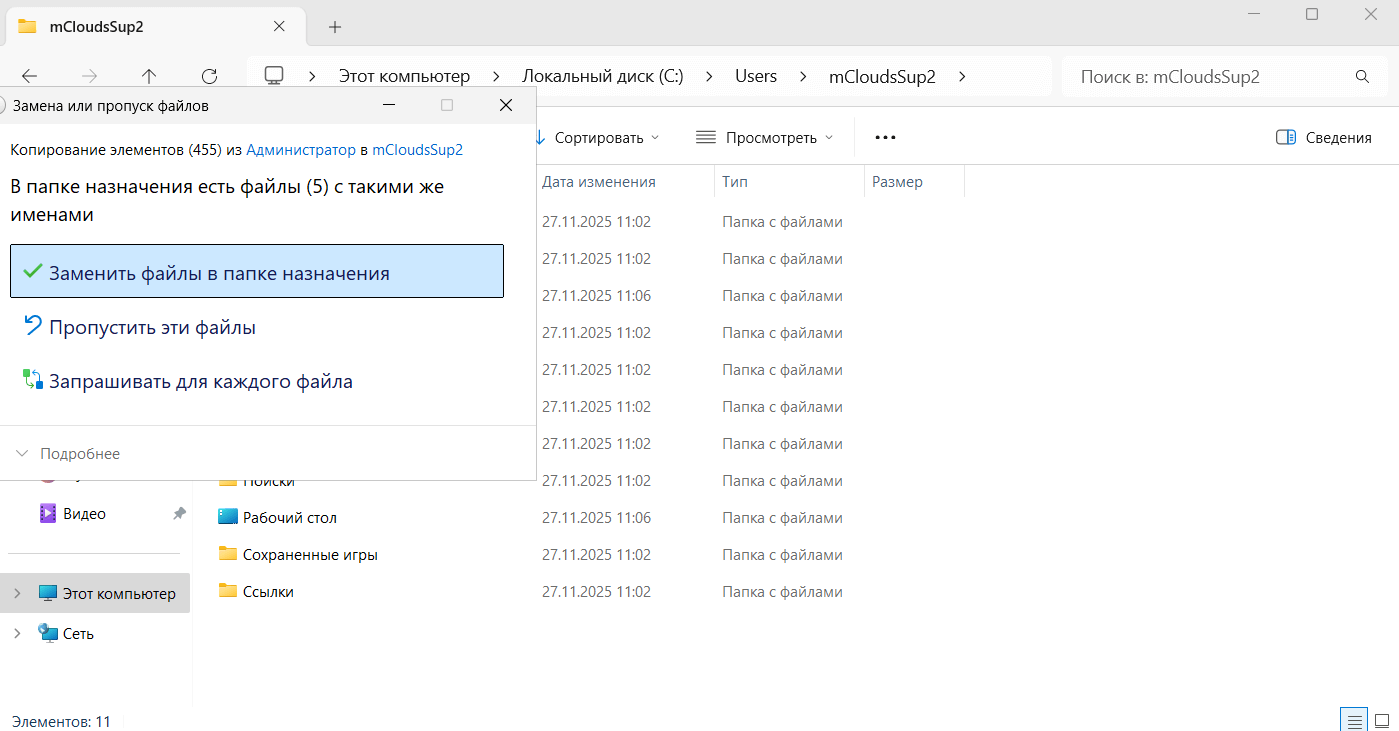 - Скопируйте необходимые для переноса данные и перенесите их в домашнюю директорию нужного пользователя.