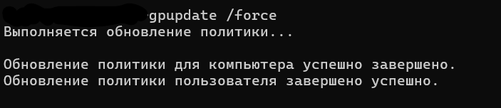 - Примените изменения в локальной групповой политике. Для этого откройте консоль с правами администратора и выполните команду