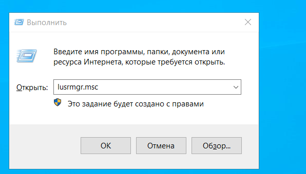 - Нажмите Ctrl + R или ПУСК -> Введите lusrgmr.msc